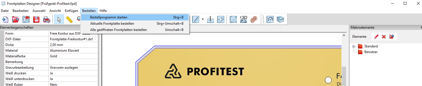 After installation, “Front Panel Designer” is available as an application, so you can only start the ordering program from within this program.