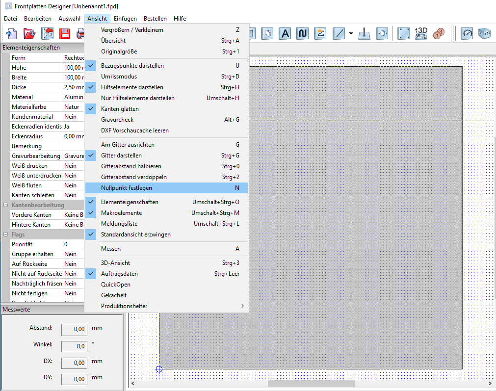Astuce : si vous souhaitez placer le point zéro dans un angle ou un centre (latéral) de la face avant, vous pouvez également utiliser une des touches 1 à 9 du pavé numérique du clavier après avoir appelé la fonction.